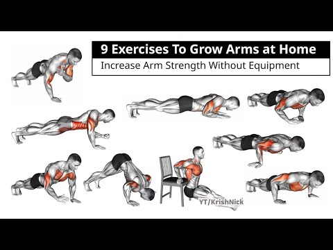 Grow arms at home with these 9 exercises to grow arms and increase arm strength without equipment. This bodyweight workout targets the biceps, triceps, shoulders and forearms to build stronger and more defined arms. These exercises help improve overall arm strength and support upper body fitness at home.